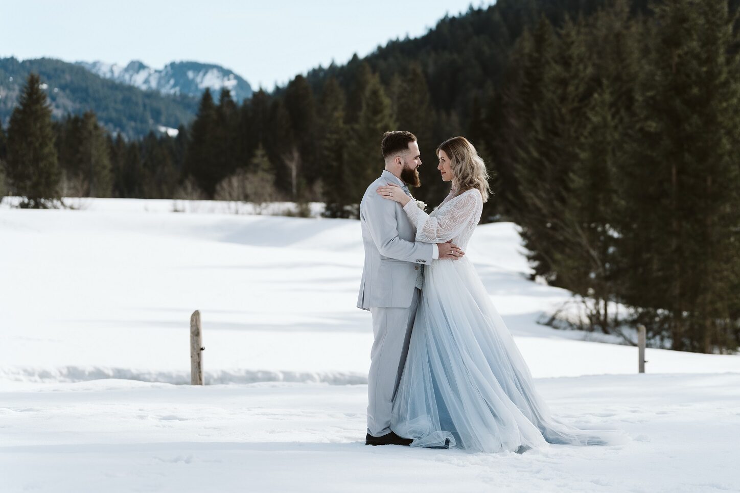Eine standesamtliche Winterhochzeit in den Bergen Österreichs oder des Allgäus kann ganz besonders romantisch sein – verschneite Gipfel, gemütliche Hütten und knisternde Kamine sorgen für eine unvergessliche Atmosphäre. Doch eine standesamtliche Trauung im Winter erfordert auch spezielle Vorbereitungen, die in der Hochzeitsplanung berücksichtigt werden müssen. Besonders das Wetter spielt bei einer winterlichen Berghochzeit eine entscheidende Rolle: Starke Schneefälle, eisige Straßen und geschlossene Bergpässe können die Anreise für euch und eure Gäste erschweren. Stellt sicher, dass die Hochzeitslocation gut erreichbar ist, und plant genügend Zeit ein, falls es zu Verzögerungen kommt.